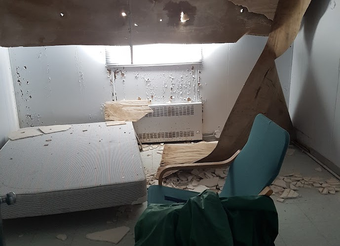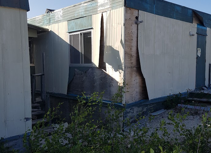 Le jour d'après fut neutre. Un de ces jours où l'on se lève et qu'on se sent morose. Dominique pêcha pratiquement dans tous les lacs que nous avons rencontrés, sans succès. 5 fois de suite, il perdit ses prises et son leurre porte-bonheur. Découragés, un campement abandonné d'Hydro-Québec nous remonta le moral quelque peu. Armés de gants, de masques, de bottes et de casques, nous fîmes le tour des bâtiments délabrés. Les dortoirs semblaient avoir été désertés à la hâte. Un poussette attendait encore patiemment dans une chambre et les lits étaient défaits. La boucherie était étonnement immaculée et le garage suintait l'huile souillée. Soudain, un TOC TOC TOC incessant venant d'un des bâtiments nous surpris. Nous nous rapprochâmes sur la pointe des pieds, curieux et apeurés de découvrir ce qui pouvait bien s'y cacher. Arrivé tout près des murs, un oiseau sortit d'un trou et s'envola. Nous éclatâmes de rire pour nous libérer de l'anxiété causée par la situation!