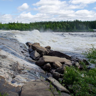périple vers Caniapiscau (kilomètre 666). Nous primes le temps de nous arrêter à la grandiose Centrale Brisay. Le sentier éducatif est très intéressant et la vue de l'évacuateur de crues est saisissante. À partir du kilomètre 600, le chemin devint très raboteux et parsemé de grosses roches plates, dangereuses pour les crevaisons. Aux alentours du kilomètre 620, nous prîmes la difficile décision de rebrousser chemin et de ne jamais voir le bout de la Transtaïga.